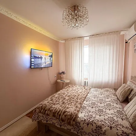 Las unidades de este apartamento tienen horno de microondas, hervidor eléctrico y utensilios de cocina. Los huéspedes disfrutarán de la cocina saludable en el restaurante Oliva, situado a tan solo 5 minutos a pie. El aeropuerto Internacional de Chisinau, situado a 10 km, es el más cercano al alojamiento en Chisináu.